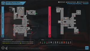 L'installation s'articule autour d'un Lobby central qui dessert deux ailes principales. Une station médicale avec des lits T1 se trouve derrière l'ascenseur du Lobby.
